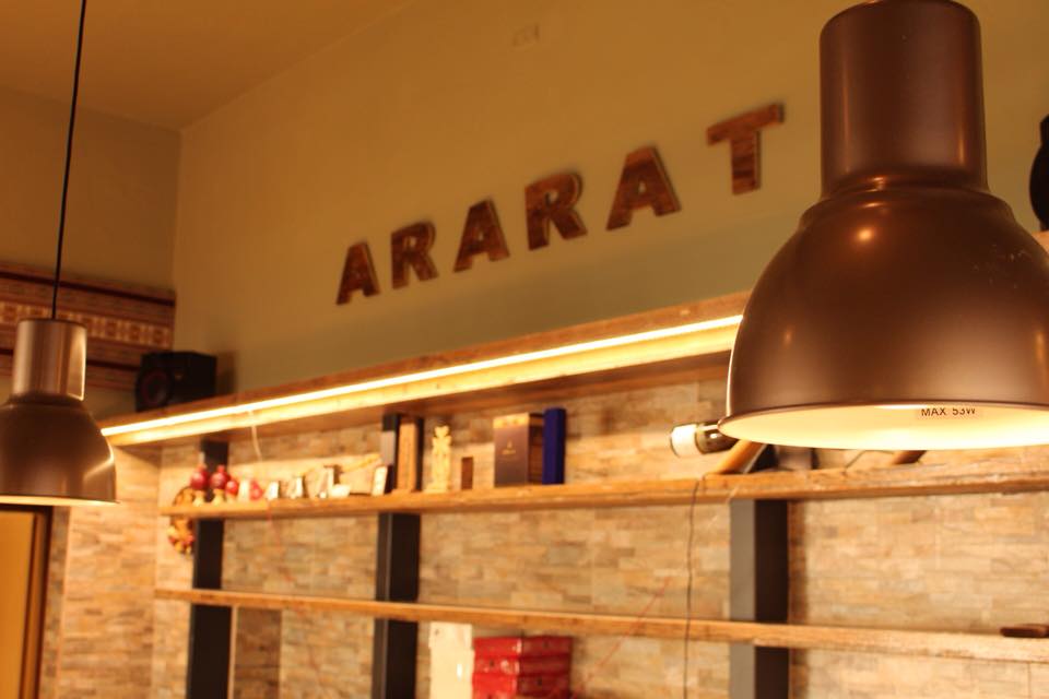 L’esperienza gustosa ed armoniosa di Ararat, incomincia dall'ingresso. Ararat si presenta agli occhi del visitatore curioso, con una luminosa scritta che emerge dal fondo di un caldo legno di noce: Ararat Le Bracerie.